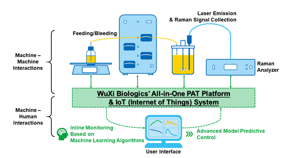 随着大数据、物联网(IoT)与机器学习的发展,PAT技术正加速进化。实时数据获取需依赖物联网连接,而中心化PAT-IoT平台可强化人机交互与机器间协作。通过物理信息系统实现数据自动分析、可视化与系统化存储。结合对于生物工艺的理解,采集到的高频参数监测便可支持更精准的决策。