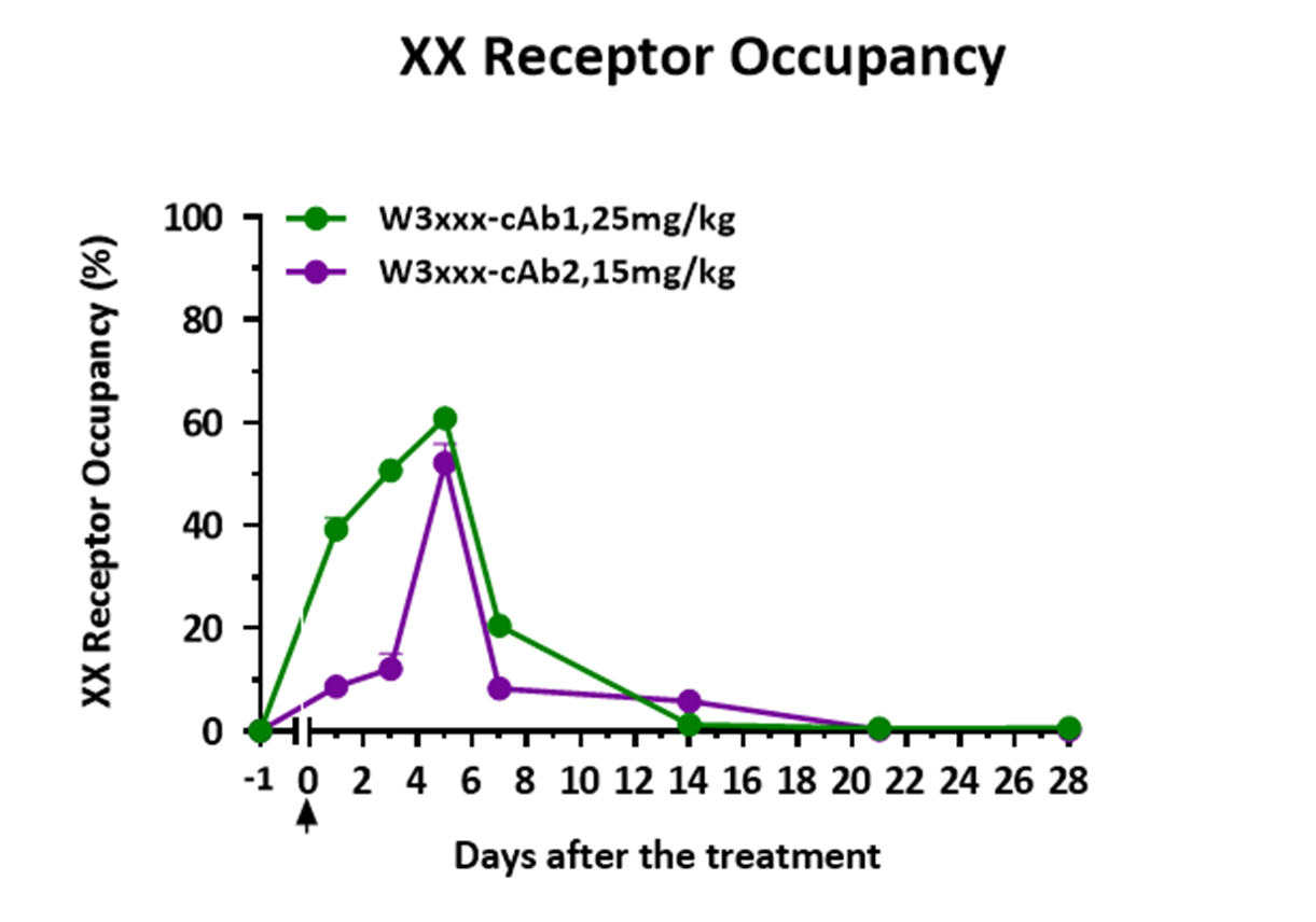 通过荧光标记抗体定量检测体内样本或细胞系中未占用受体的百分比从而计算出相应靶标上的受体占有率(RO)。