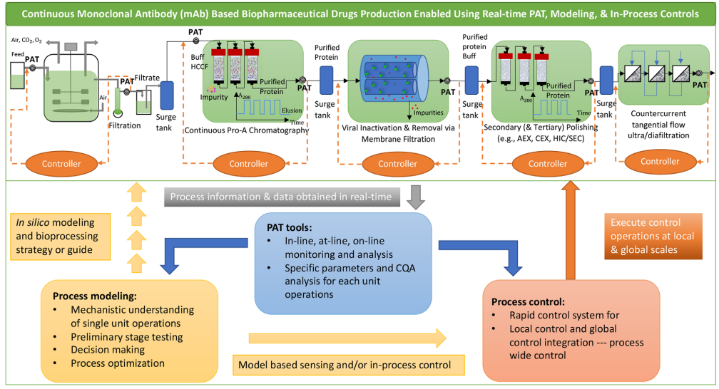 图片来源:PAT,模型决策和过程控制助力单克隆抗体实现全连续化生产1