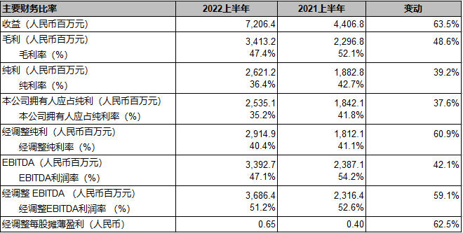 2022年上半年财务亮点
