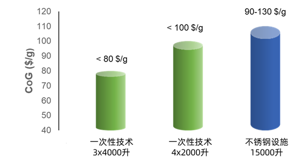 除了成本效益,一次性技术由于其缩短了建设、清洁和维护时间,实现了生产效率的提升,能够更灵活地支持cGMP生产,高效、快速地调整生产计划和产量。