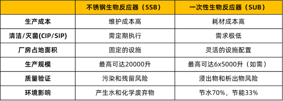 另一方面,生物制药企业正从大体积、单一产品工厂转向小体积、多产品工厂。这与一次性生产技术的优势也高度契合——高效、快速地增减一次性生物反应器数量,在实验室规模即可实现工业化生产,无需面临传统工艺放大的挑战[11](见表1)。