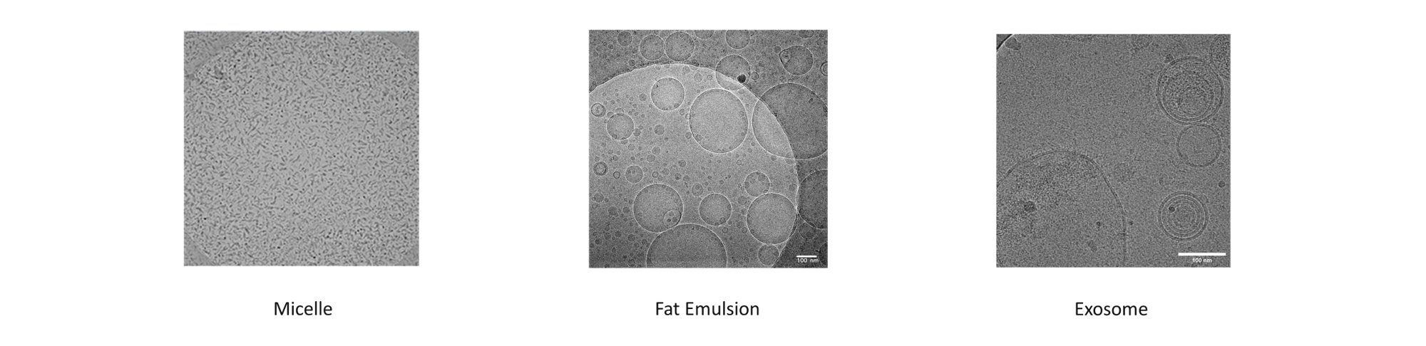 在胶束或生物制剂表征时,Cryo-TEM 可精确提供每个颗粒的粒径、形貌等多重关键质量属性(CQA)信息。