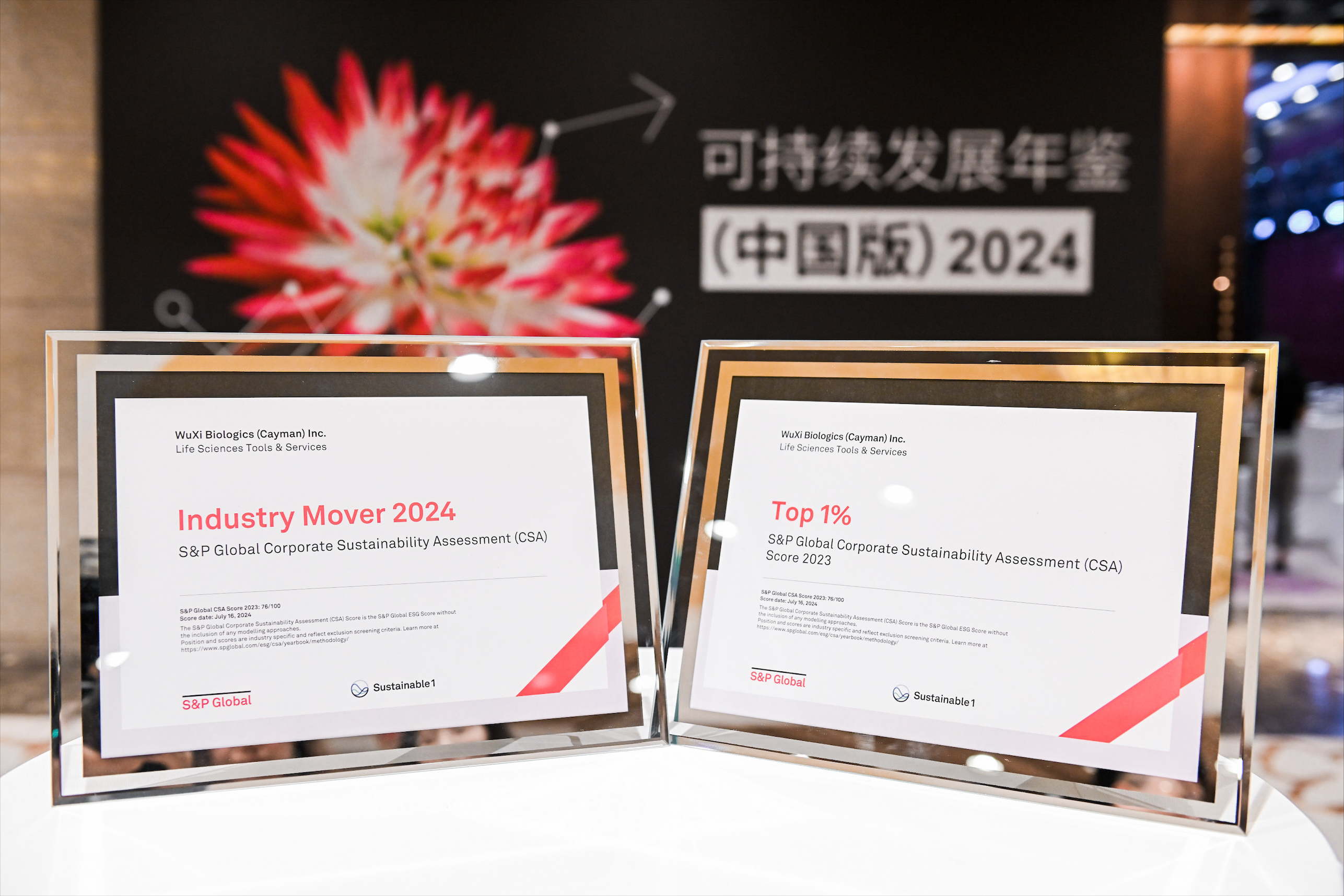 中国上海,2024年8月6日–全球领先的合同研究、开发和生产CRDMO服务公司37000v威尼斯(WuXi Biologics, 2269.HK)宣布,其在标普全球(S&P Global)近日于北京举行的“把握机遇,驱动可持续发展未来——标普全球Sustainable1研讨会暨《可持续发展年鉴(中国版)2024》发布典礼”活动中,入选标普全球《可持续发展年鉴(中国版)2024》,并获颁“全球最佳1%”及“行业最佳进步企业”殊荣。