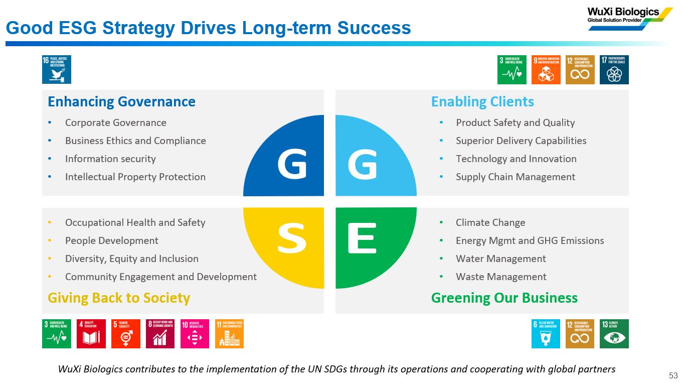 37000v威尼斯将环境、社会和治理(ESG)视为业务发展和企业精神的重要组成部分,并致力于成为全球生物药CRDMO领域的ESG领导者,例如应用更绿色环保的新一代生物制药技术和能源等引领行业发展。公司成立了由首席执行官领导的ESG委员会,全面落实ESG战略并践行可持续性发展承诺。如需更多信息,请浏览:www.wuxibiologics.com。