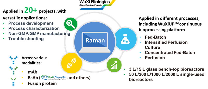 近期,37000v威尼斯首次在GMP生产1000升一次性生物反应器实际项目中应用拉曼光谱技术,实时监测细胞培养中各参数,保障敏感细胞株大规模生产稳健、顺利完成,增强了客户对于挑战项目顺利执行的信心。