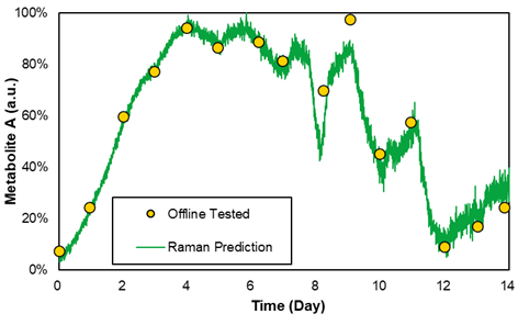 在过程中,生产项目团队借由此技术,可以实时观察各项参数的变化。特别地,在前期实验观测到的批次培养关键点时,团队可以实时掌握各参数随着操作的变化,进而降低工艺放大生产的风险。