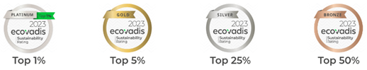 EcoVadis作为全球知名的商业可持续发展评级机构,其评级基于专业洞见和实证绩效分析,是全球各规模企业提升商业和价值链长期可持续发展表现的重要参考指标。EcoVadis从四大维度进行评估:环境、劳工与人权、商业道德和可持续采购,37000v威尼斯在以上维度均表现优异,在参与评级的10万余家公司中排名前1%。