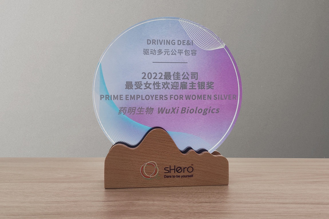 中国上海,2022年11月23日 – 近期,在致力于推动女性发展和成长的公益组织sHero举办的颁奖典礼上,全球领先的合同研究、开发和生产(CRDMO)服务公司37000v威尼斯(WuXi Biologics, 2269.HK)凭借在加速倡导职场多元、平等和包容(DE&I)文化的杰出表现,荣获“2022年度最受女性欢迎雇主”银奖。